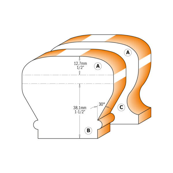 ΚΟΠΤΙΚΟ ΚΟΥΠΑΣΤΗΣ CMT D=31,7 I=38,1 L=87 S=12 PR=C Z=2 Table Edge & Hand Rail Bits