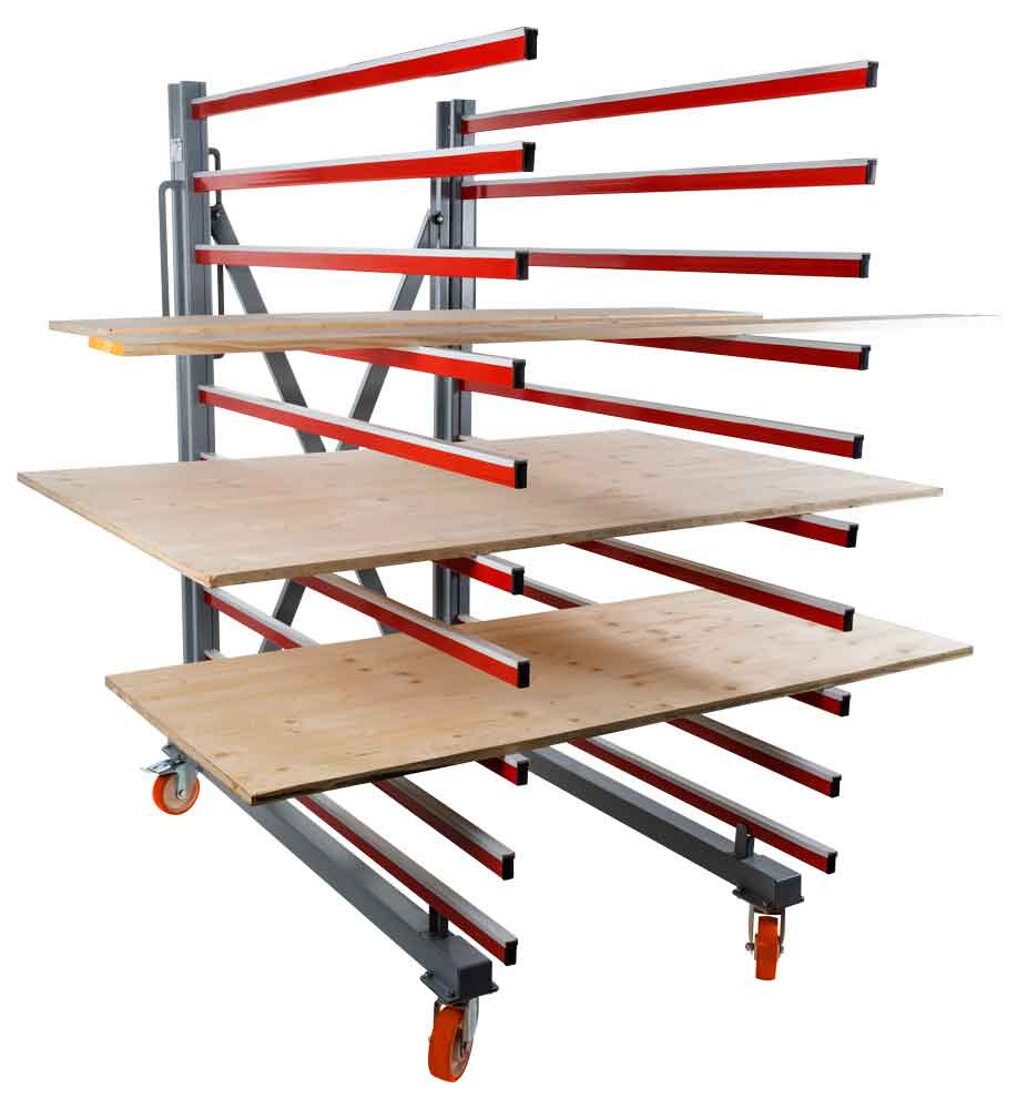 - PVC support surface on the cantilever profiles to protect the surfaces of the parts to be stored