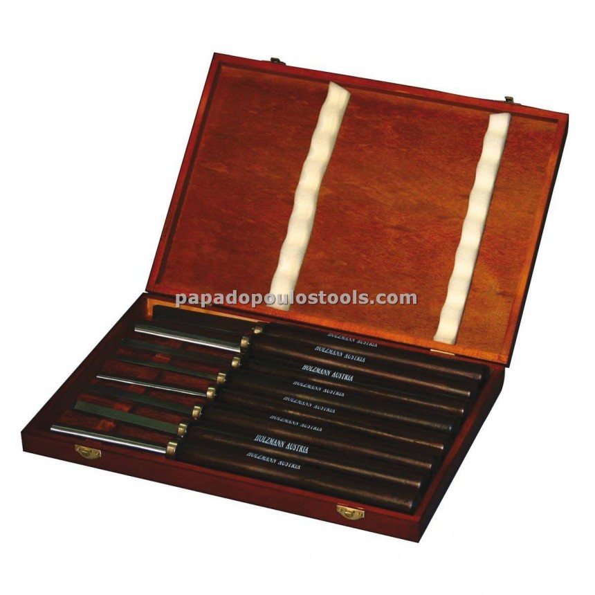 Κοπτικά εργαλεία τόρνου 8 τεμαχίων σε ξύλινη κασσετίνα,ξύλινη λαβή απο λακαρισμένο ξύλο.