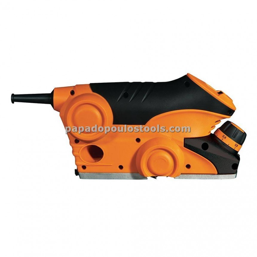 Πλάνη χειρός 750W ελεγχος βάθους 17 θέσεων για ακριβή αφαίρεση υλικού, διακόπτη κλειδώματος και μπροστινή λαβή χαμηλών κραδασμών για πρόσθετη άνεση. Αφαίρεση σκόνης αριστερά ή δεξιά. Ενδειξη λειτουργίας. Το αφαιρούμενο σύστημα τυμπάνων λεπίδων επιτρέπει την τοποθέτηση εναλλάξιμου τυμπάνου λείανσης,το οποιο συμπεριλαμβάνεται στη συσκευασία,πλάτος κοπής82mm, βάθος 3mm. Βάρος 3.9kg