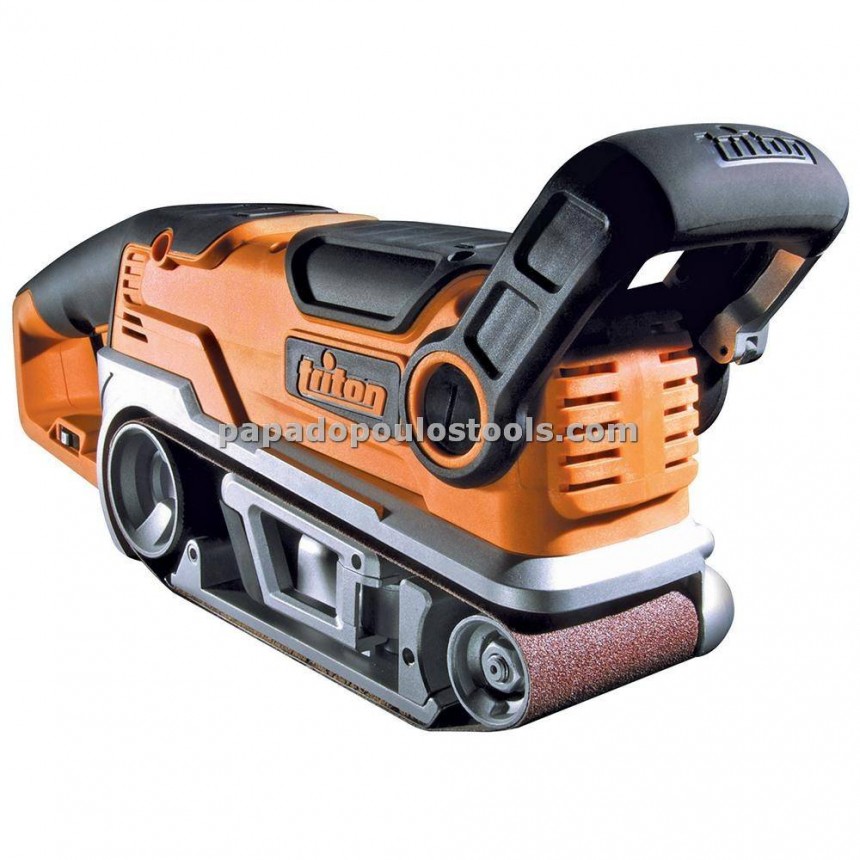 Ταινιολειαντήρας χειρός, ισχυρός κινητήρας 1200W μπροστινός κύλινδρος μικρής διαμέτρου για λείανση περιοχών και λεπτομερείς εργασίες,λυχνία ασφαλείας νέον που υποδεικνύει πότε υπάρχει διαθέσιμη τροφοδοσία στο τριβείο. Περιλαμβάνει  σάκο σκόνης και 3 λειαντικά (80, 100 και 200 grit). Βάρος 4.8kg.